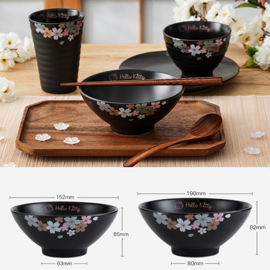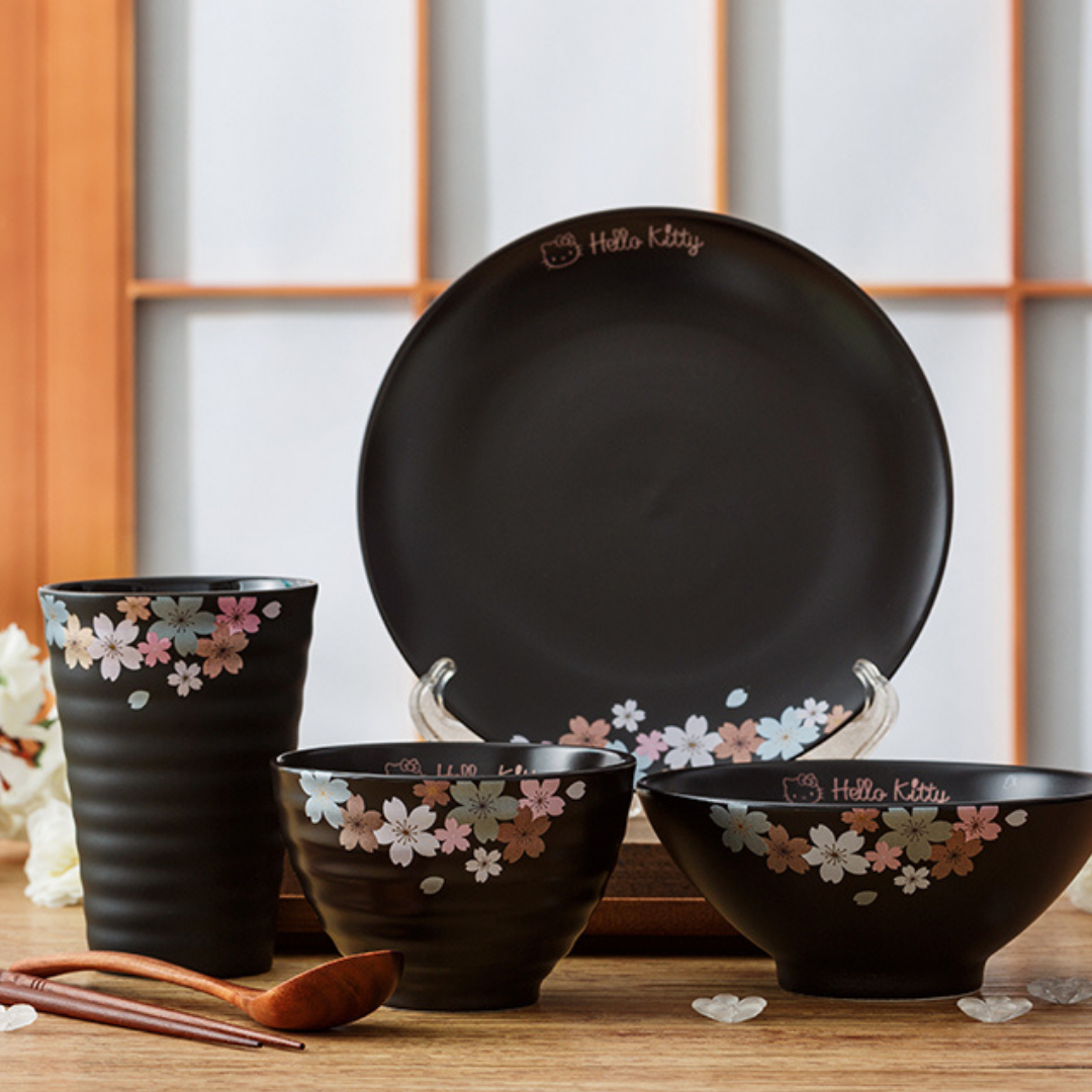 【正貨保證】HelloKitty黑色櫻花陶瓷碗碟套裝