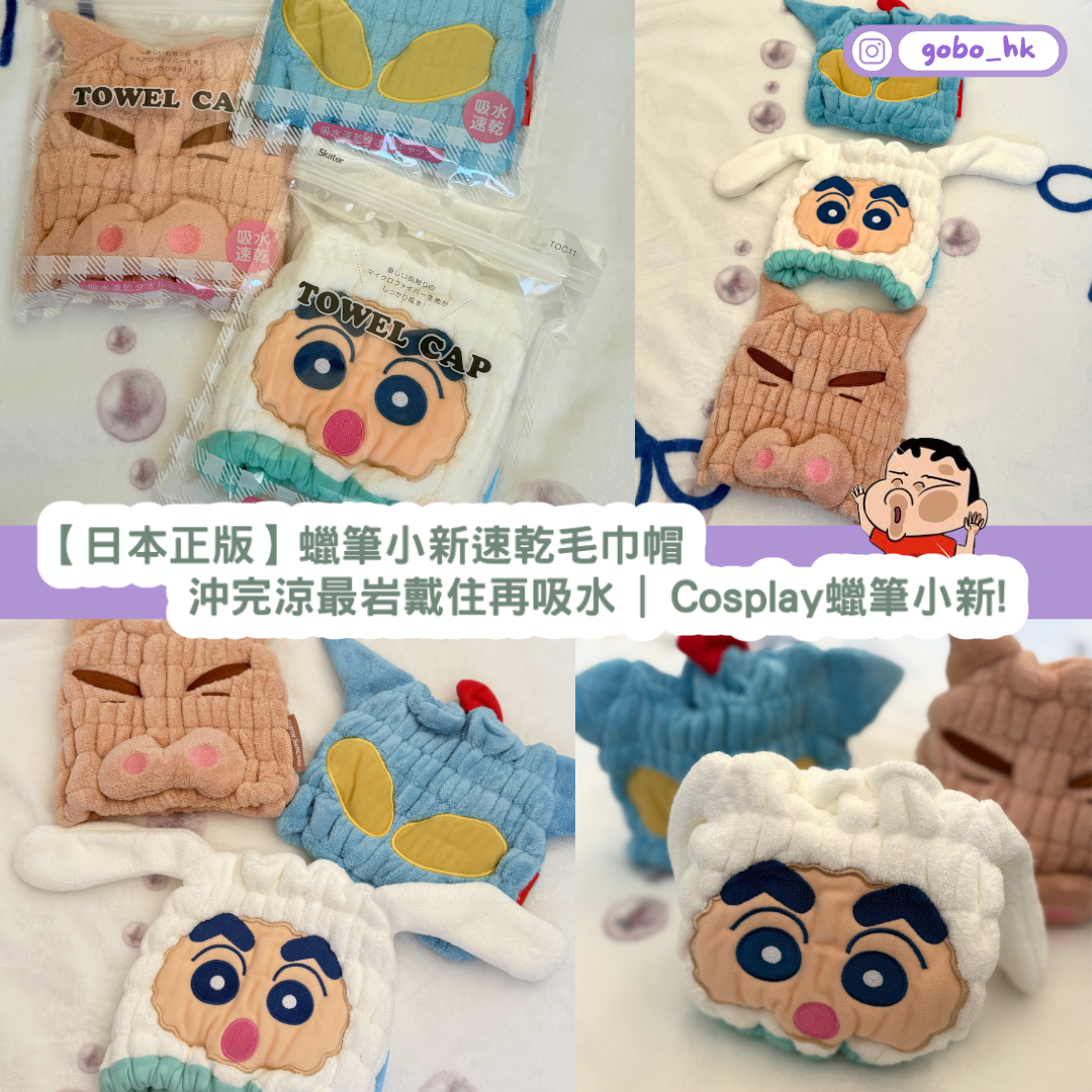 【日本正版】蠟筆小新速乾毛巾帽 | 沖完涼最岩戴住再吸水 | Cosplay蠟筆小新!